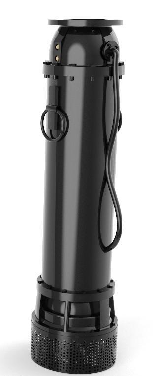 Being the pump suction located at the lowest part of the set, this allows increasing the submergence of the set in installations where the water level is low or where the water level is too low to assure the required suction conditions. At the same time, this configuration maximizes pumping, allowing an efficient use of water reserves. The motor, assembled in inverted position on top of the set, includes a cooling shroud that ensures the cooling flow with the discharged fluid, and thus cooling is carried out by water flowing around during operation.