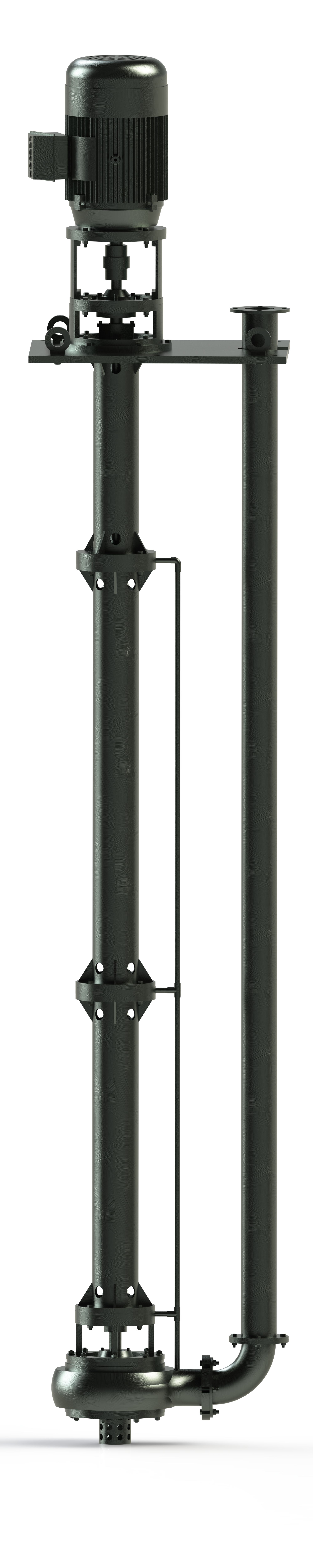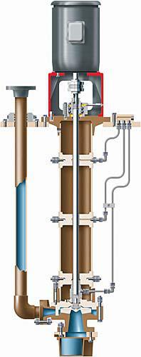 The single volute and generous solids passages through the pump ensure a safe and clog less operation. The wet-end assembly is suspended from a tubular column below the bearing housing. Standard pumps are supplied with wide choice of material.